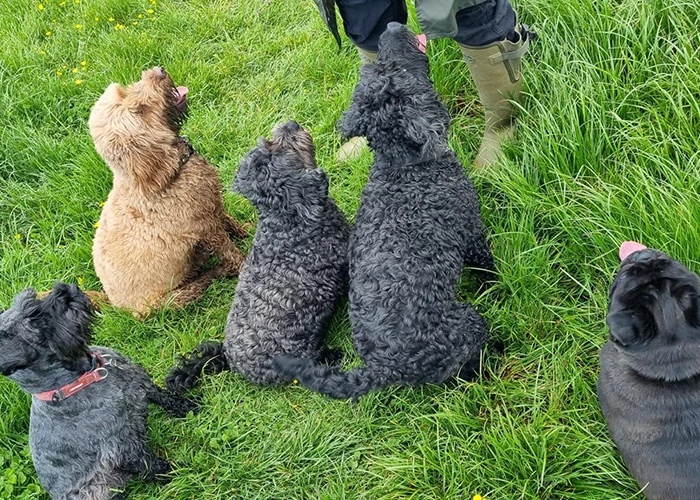 All dogs enjoy at least one & a half hours a day of country walks in local woodland.